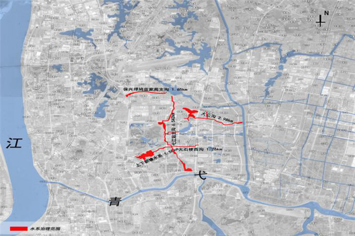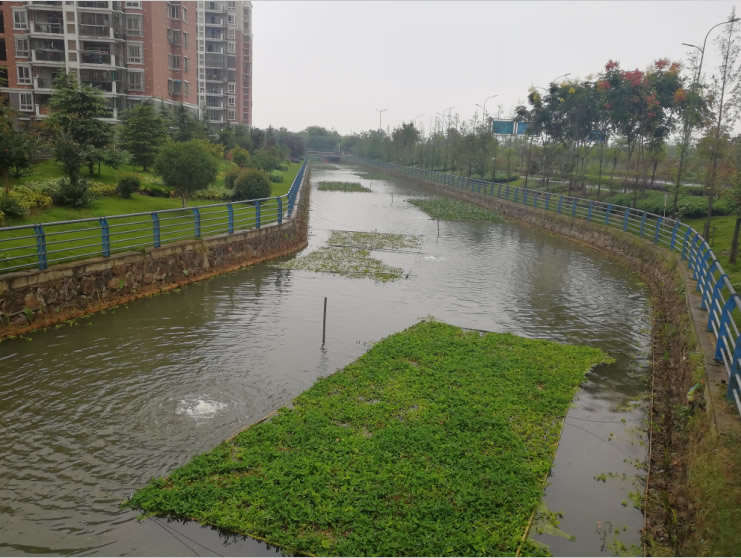 鳩江區(qū)黑臭水體治理項目包括弋江站主溝、保興垾鳩茲家苑支溝、火石梗西溝、上、下新塘水系、大公溝五條水系的治理。項目水系總長度為14.94km,水域面積約0.46km2。水系周邊有學校、商鋪、垃圾站等,周邊垃圾滲濾液流入水系,水體黑臭現(xiàn)象嚴重,幾乎喪失自凈能力,水質(zhì)很差。我公司利用“三鏈”網(wǎng)式生態(tài)修復技術理念,通過修建生態(tài)濾壩、生態(tài)補水、水系連通造流,并采取截污納管、底泥疏浚、生物膜處理、微孔曝氣、水生動物、植物、微生物的投放和雨污預處理系統(tǒng)等環(huán)保措施,恢復生態(tài)系統(tǒng),實現(xiàn)流域水系綜合治理,治理后水質(zhì)滿足甚至優(yōu)于消除黑臭水體的指標。